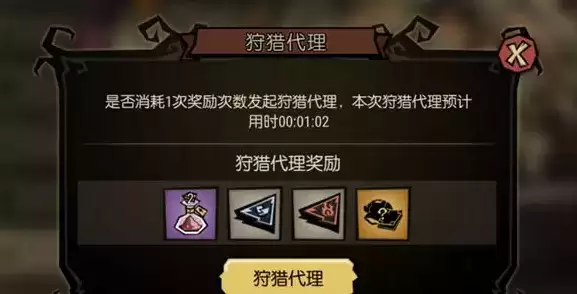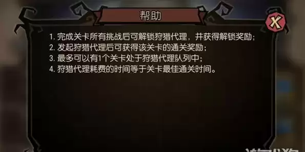 完成所有关卡挑战后,可解锁【狩猎代理】,可消耗一次奖励次数发起,并获得该关卡的通关奖励,最多可以有一个关卡处于狩猎代理队列中,BOSS都不用亲自动手打了,奖励直接领取到家~