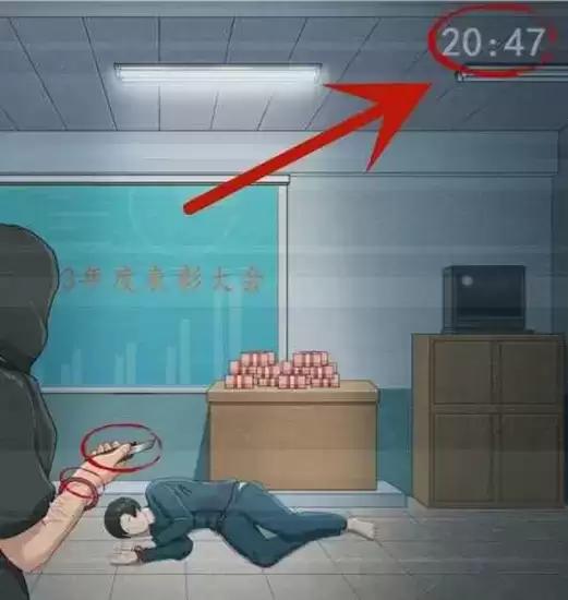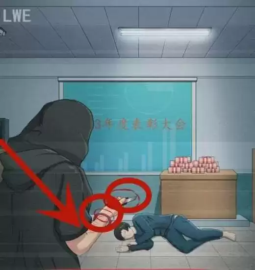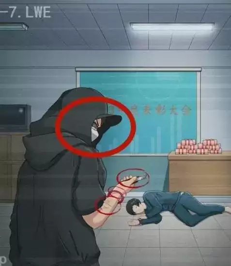 1、一开始会看见一个监控,点击黑衣人的手环,伤痕和小刀。