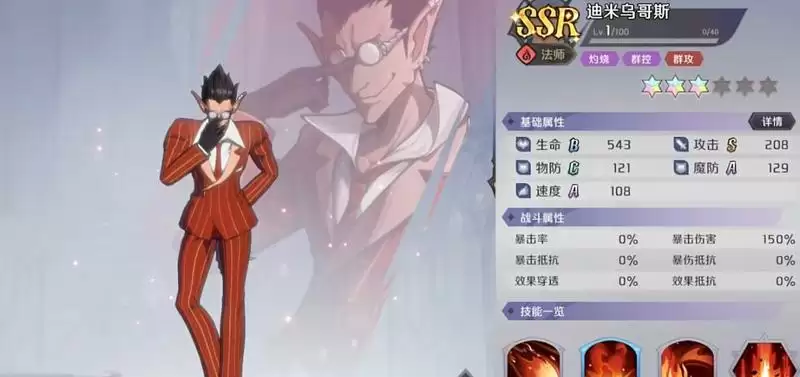 迪米乌哥斯的爆发能力非常强大,所有的技能都是输出,在游戏前期十分暴力,并且能够承担队伍的主输出手位置。