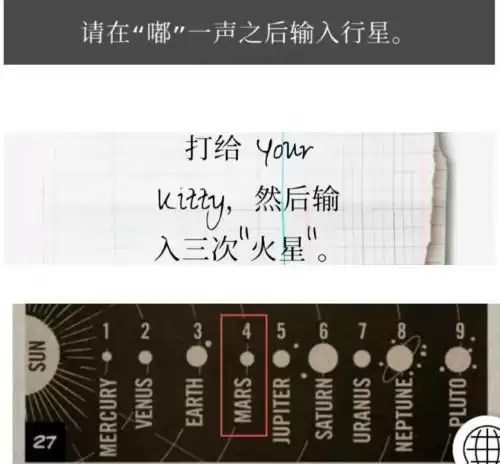 8、电话语音当中需要我们在嘟声之后输入三次火星,从书中望远镜广告知道火星是第四个数字。