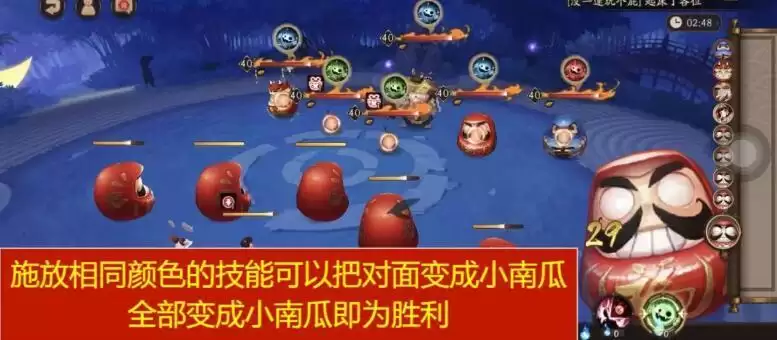 3、我们释放相同颜色的技能可以把对面变成小南瓜,全部变为小南瓜即可胜利了。