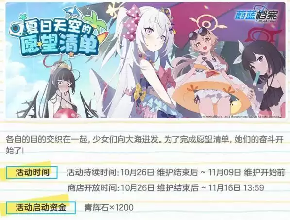 蔚蓝档案泳装什么时候出?蔚蓝档案马上就要开启夏日泳装活动了,具体的开启日期其实就是10月26日—11月9日,期间将会有全新的泳装活动和泳装池子,一起来看看具体的活动介绍吧。
