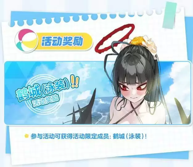 1、参与活动即可获得活动限定角色:鹤城(泳装)。