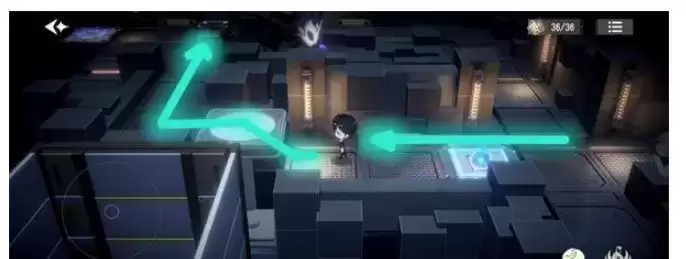 6.可是平台原先下降了,不用担心~让我们从左侧小路走到第一个控制台旁,对它使用“调查”,速速把平台升起来。