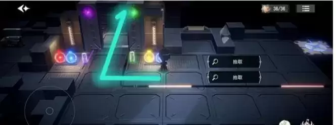 21.点击“调查”,让浮动平台来到左侧,接着我们抱起蓝色小球,将其放到门右的槽中。