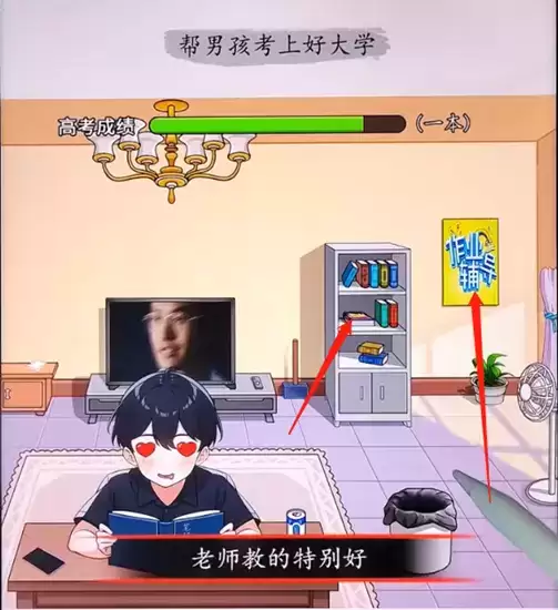 7、点击后面柜子里的书,墙上的作业辅导。