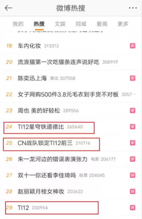 先是有关TI12的多个词条,纷纷登上热搜。