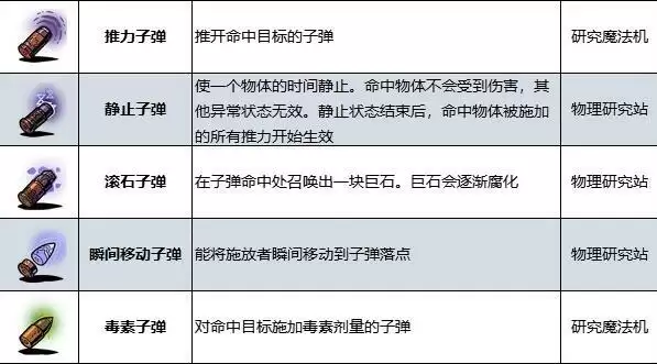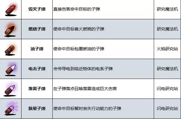 效果:使命中目标暂时丧失行动能力的子弹