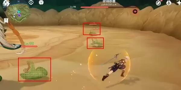 3、接着我们要靠近boss,一定要用火属性角色去激活的boss会产生一些小蕈兽,把这些蕈兽击败就可以了;