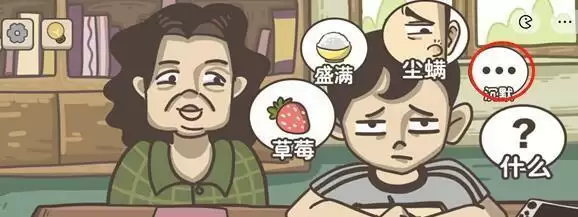 3、来帮我听写需要玩家通过奶奶的听写任务,注意哦奶奶说的是台州话,第一题草莓-盛满-尘螨-沉默-什么,答案选择【沉默】;