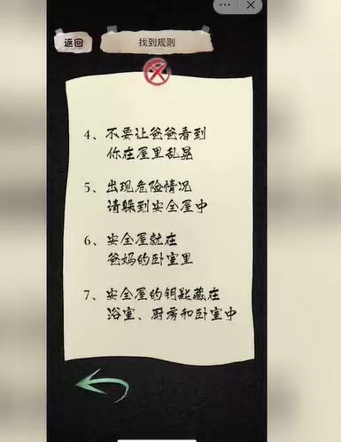 1、场景一,点击墙上的纸条,找到规则