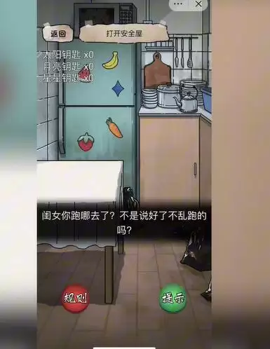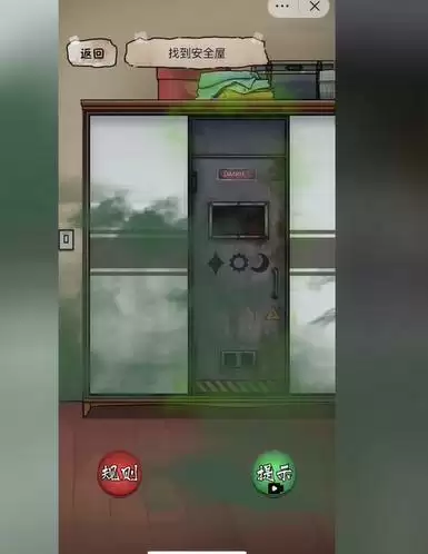 3、场景二,点击门上的纸条,点击中间的衣柜发现安全门,点击安全门开始寻找钥匙。