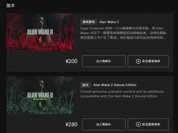 1、心灵杀手2标准版为200元,豪华版为280元。