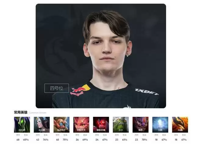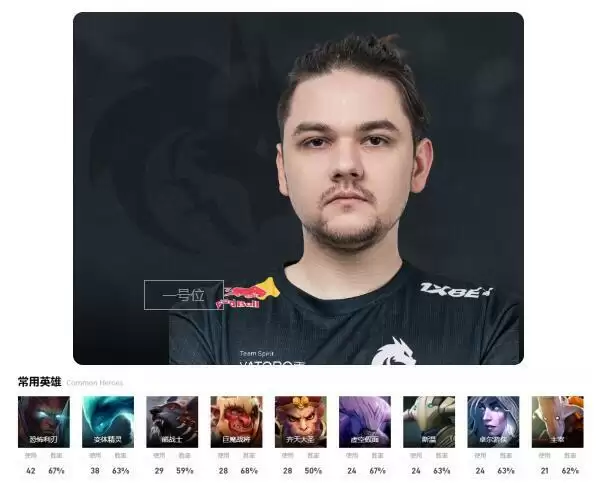 选手介绍:一号位的鸭头肉年仅20岁就夺得了ti冠军,并且实力极其强悍,在目前的职业选手实力中是独一档的一号位选手。