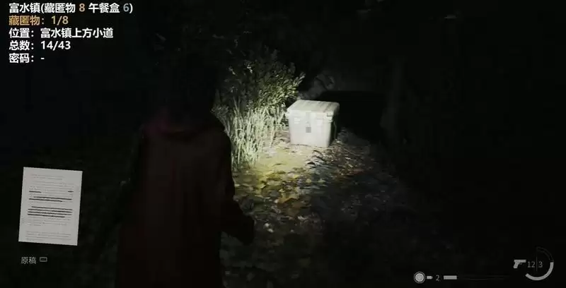 1、藏匿物1位置:富水镇上方小道,来到富水镇上方的小道,在附近即可找到隐匿物了。
