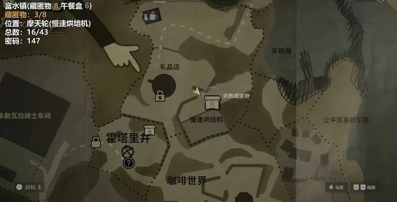 3、藏匿物3位置:摩天轮,在摩天轮处可以发现隐匿物。