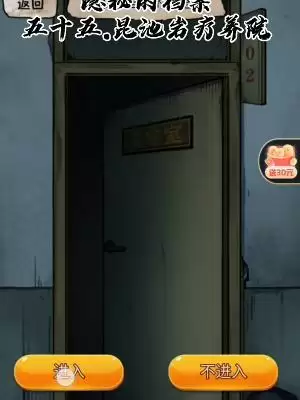 4、接着出现的选项我们都不选,将口袋里的糖果给女生吃,来到院长室门口点击纸条了解规则,之后打开房门,选择逃跑。