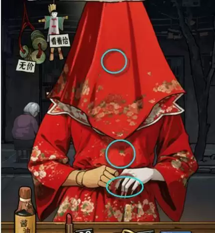 4、顾客四,点击下图所示点,给她绣花鞋,然后上下滑动木头手,媳妇,吓死我了。