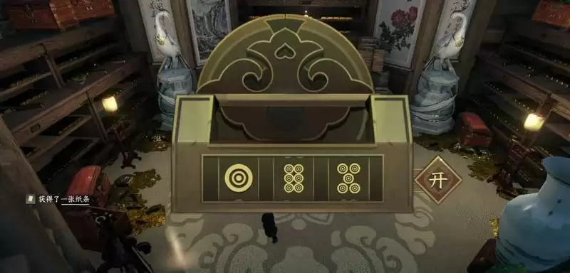 2、到达位置后打开大门可以进入聚宝窟,与中间的大宝箱互动后会触发剧情,大门关闭且有海水涌入,玩家需要完成解密才能化解危机。这里的密码是【165】直接输入就可以解锁了。