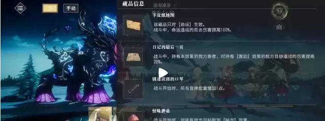 1、核心藏品:羊皮纸地图,效果是提高命运反击伤害100%,这个感觉非常关键,别的都好说,没这个你可能连最终Boss都未必能见到