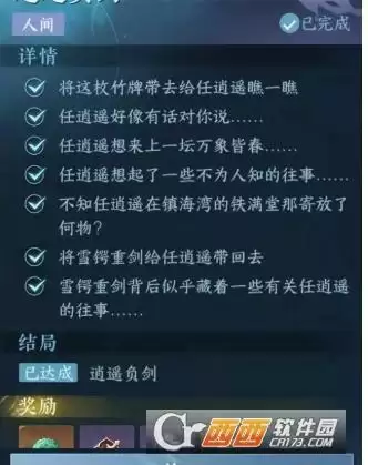 4、返回第2步处向“任逍遥”提交“雪锷重剑”并对话即可完成任务