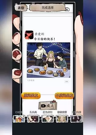 2、然后会出现两个选项,一定不能选择这个质问男生,我们要相信男友。