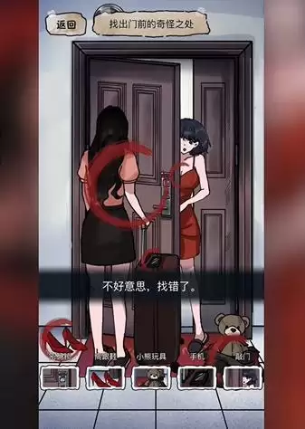 3、首先可以看到门的密码换了、门口垃圾袋中的玩偶、放在门口的高跟鞋、手机里拨打的电话没人接、屋里不知姓名的女人等等。。