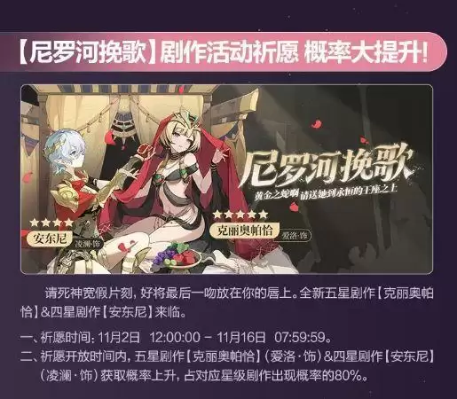 三、【尼罗河挽歌】剧作活动祈愿 概率大提升!
