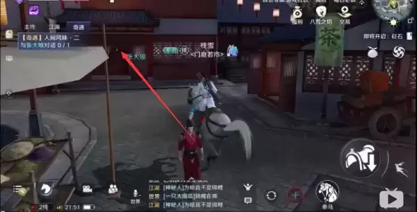 1、首先传送到江南钱塘市集的左边,(475,139),找脚边有篮子的老人,捡起篮子,询问老人触发奇遇。