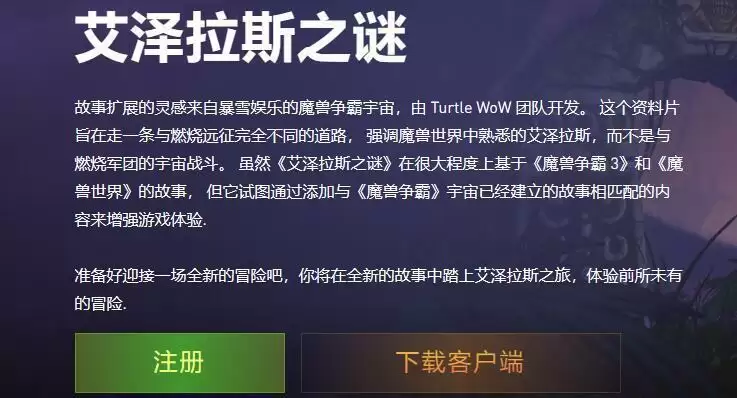 2、乌龟服是欧洲那边的魔兽世界的一个私服,也叫作艾泽拉斯之谜。