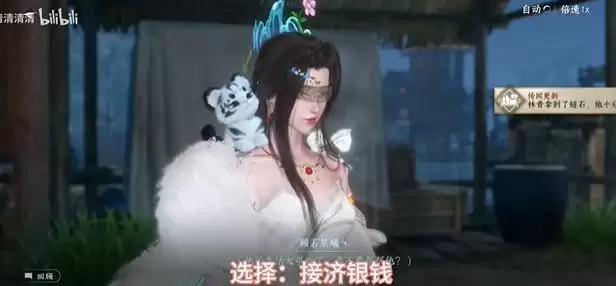 4、选择:接济银钱,和林青(1704,855) 对话,完成结局二:生命之花。