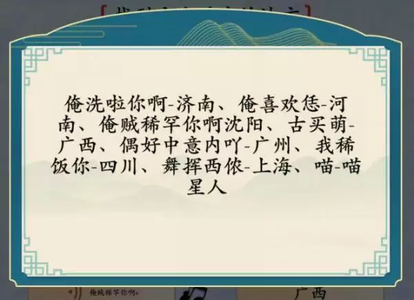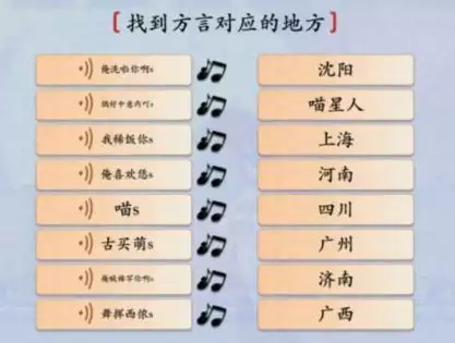 1、这一关是喜欢你的方言合集,我们需要和对应的地方连线