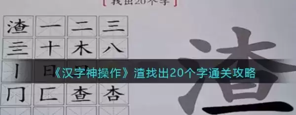 汉字神操作是一款有趣的汉字解谜游戏,在这里,小伙伴们可以挑战各种形式的汉字关卡,下面小编带来的是汉字神操作汉字之美·渣的过关方法,快来看看吧!