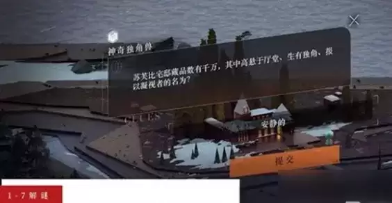 问题:苏芙比宅邸藏品数有千万,其中高悬于厅堂、生有独角、报以凝视者的名为?