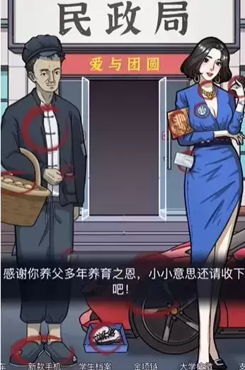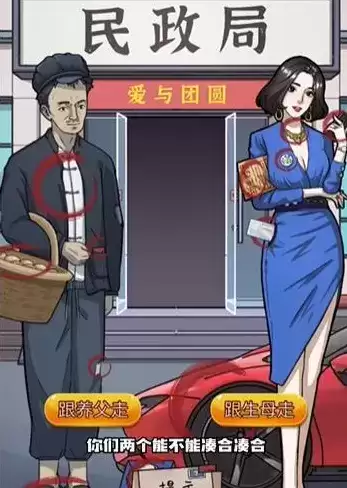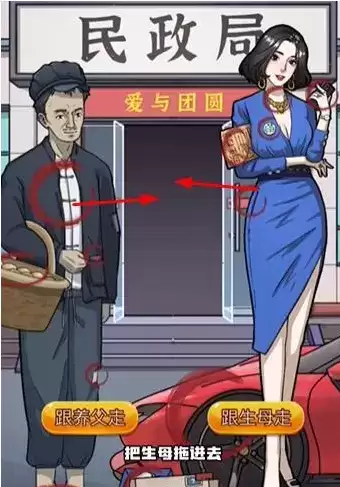 4、当然玩家是2个都不选择,先将生母拖动到民政局中,随后将养父也移动进入。