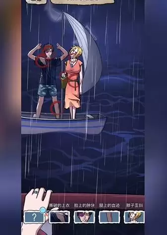 4、找完成后是还需要找到阿伟身上不对劲的地方,脸色惨白、身上的伤口、一只鞋、匕首。