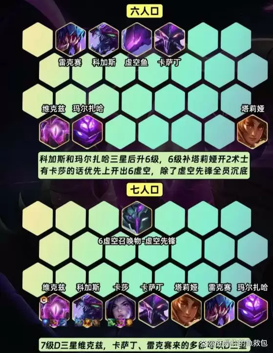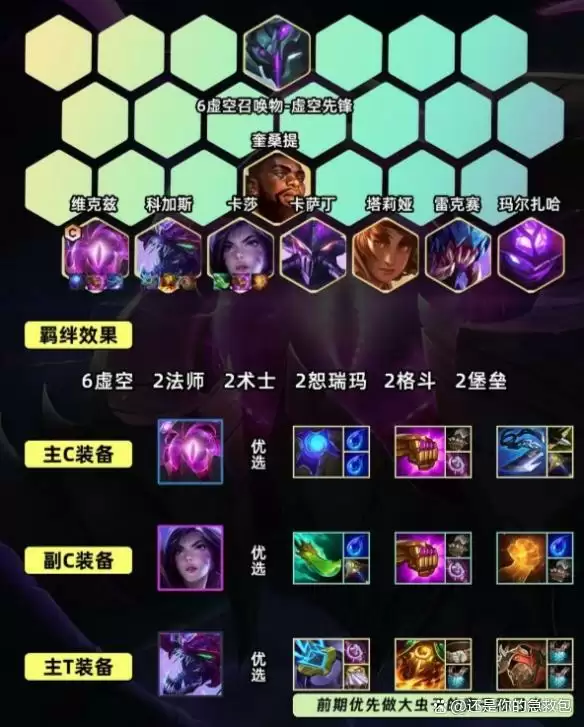 有卡莎的话优先上开出6虚空,除了虚空先锋全员沉底
