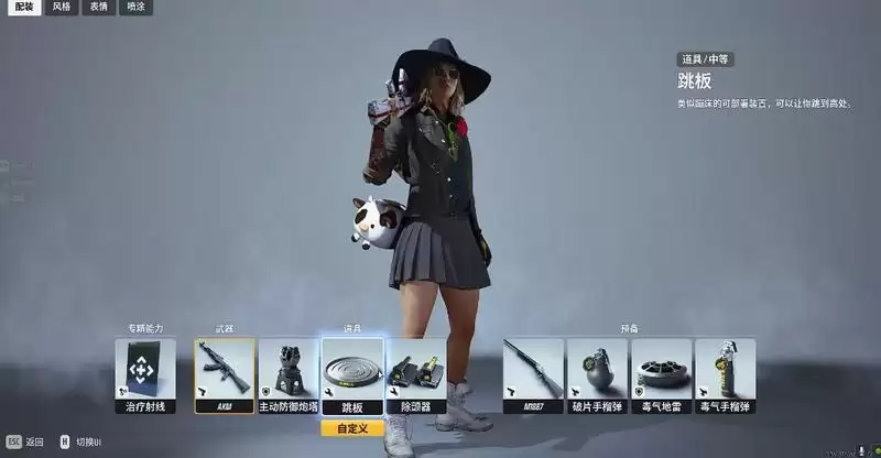 中2配装:同样是治疗射线,打辅助的位置,武器AKM和声呐手榴弹,道具用跳板和除颤器。