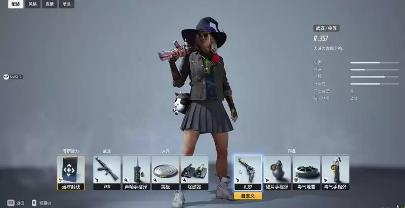 中1配装:治疗射线、武器AKM和毒气地雷,道具滑索除颤器,和中2组成双治疗。