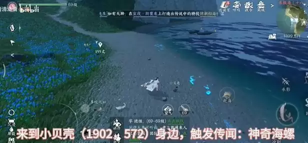 1、来到小贝壳(1902,572)身边,触发传闻:神奇海螺,出示止血散给小贝壳,获得神奇海螺。