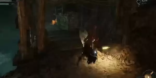 1、首先我们获取到细骨之戒之后,前面走,爬下楼梯。