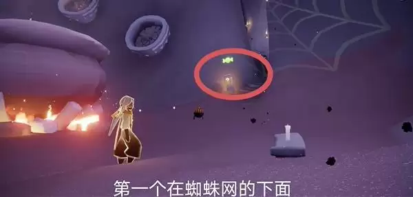 1、第一个就是在进图后面的第一个大锅旁边的蜘蛛网下面就可以找到。