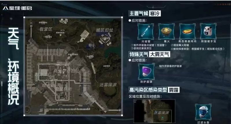 2、特殊天气:大雾,需要装备防护面罩
