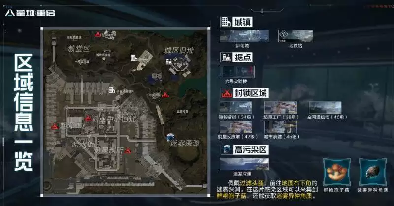 1、高污染区:迷雾深渊,需要佩戴过滤头盔。