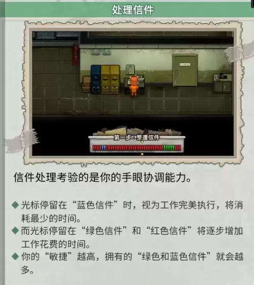 注意事项:当做过几次货物分拣,和这里的狱警混熟了,即可开启登记信件工作。登记信件总共分为两步。