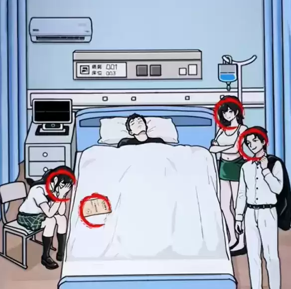 1、场景一,病床上躺着的是爸爸,旁边坐的是女儿。