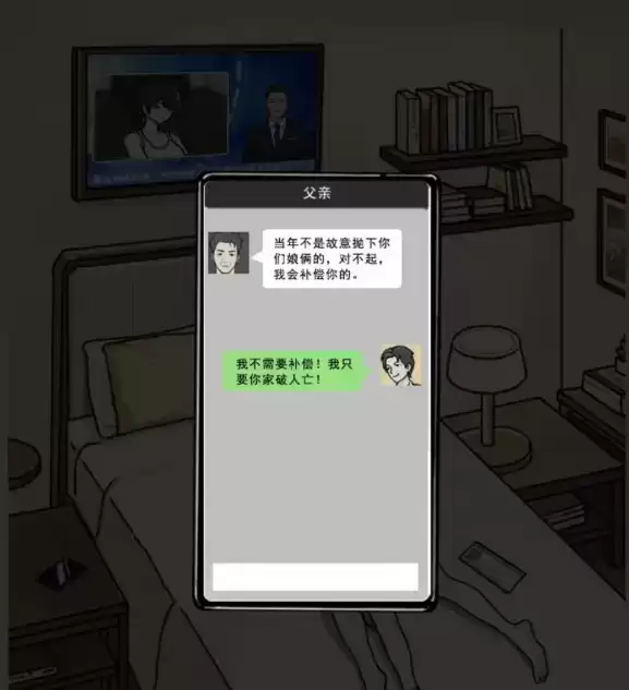 4、场景三,妈妈在和女儿争吵,男子在沙发上,地上有手机。