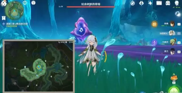 3、然后我们需要完成三处解密,第一处是北方,和蓝色石柱交互获得异色球球章鱼的力量,点击T键(电脑端)改变战技,攻击菌毯。