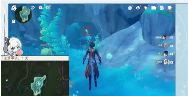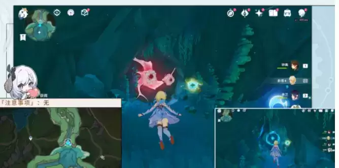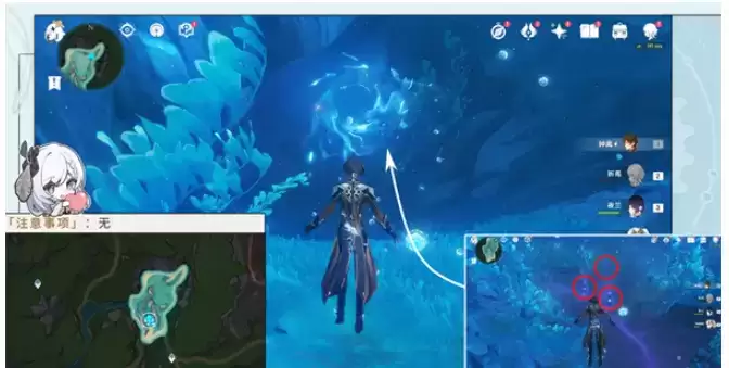 2.再发射水母击碎北边的巨石,进入漩涡快速前进。