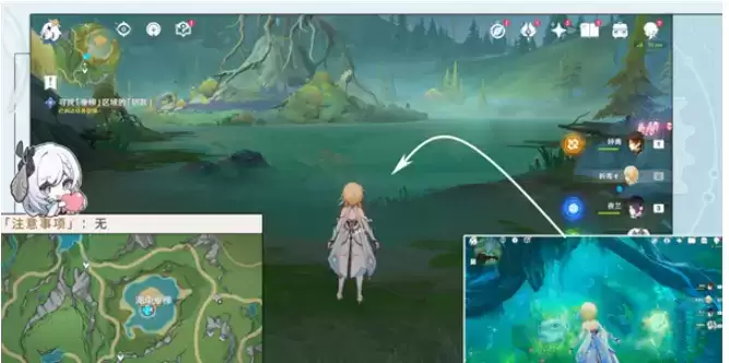 1.我们来到湖中垂柳区域,潜到水下,需要寻找垂柳区域的钥匙。